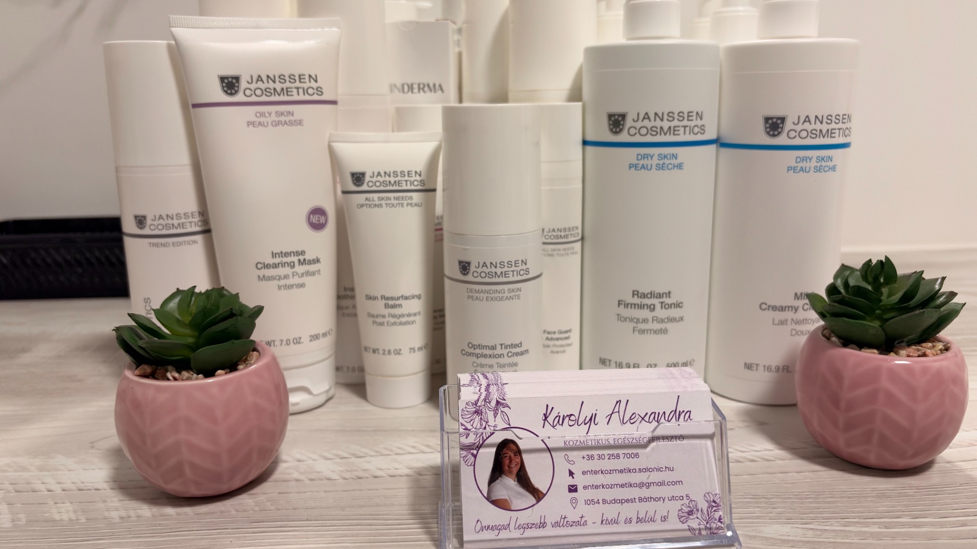 Szalonomban a Janssen Cosmetics kozmeceutikumokkal dolgozom, mely márka a professzionális kozmetikai termékek világában a magasan pozícionált kategóriát képviseli.